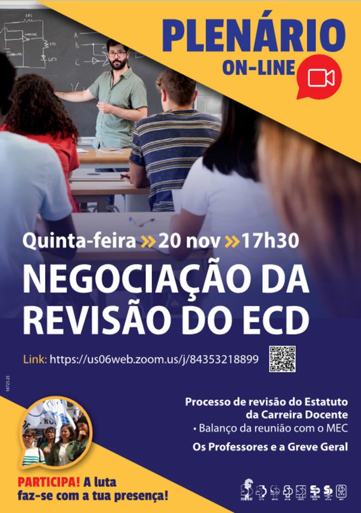 Após a reunião com o governo, a FENPROF irá realizar um plenário on-line no dia 20 de novembro, às 17:30 horas, para dar a conhecer o processo negocial, as propostas, as contrapropostas, as dificuldades do processo e as propostas de ação.