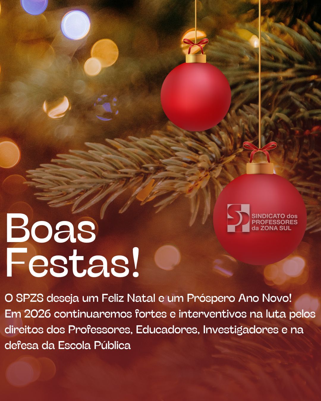 O SPZS DESEJA UM FELIZ NATAL E UM PRÓSPERO ANO NOVO. EM 2026 CONTINUAREMOS FORTES E INTERVENTIVOS NA LUTA PELOS DIREITOS DOS PROFESSORES, EDUCADORES E…