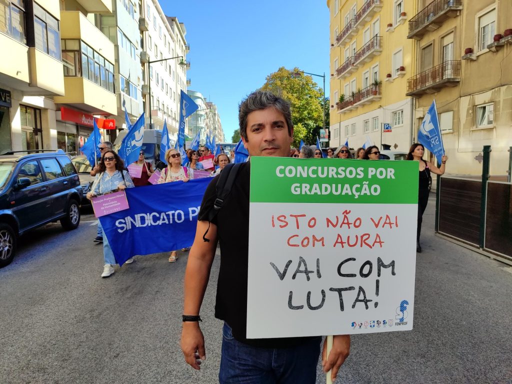 A FENPROF celebrou o 5 de outubro, Dia Mundial dos Professores, este sábado, dia 4 de outubro, com uma ação de luta em Lisboa, com concentração e desfile, desde o Jardim do Arco do Cego até ao edifício sede da Presidência do Conselho de Ministros, para lembrar ao governo os compromissos assumidos internacionalmente, reclamar de novo a valorização da profissão docente e reafirmar que a Educação não pode esperar!