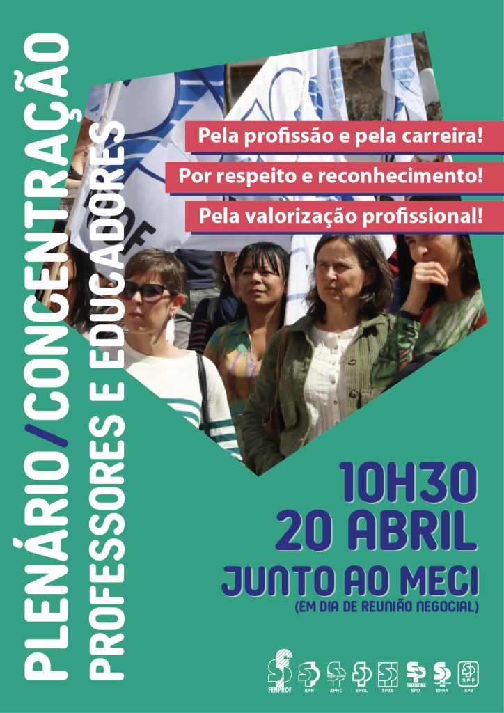 A FENPROF promoverá, no mesmo dia e hora, um plenário/concentração de docentes junto ao Ministério que terá por objetivo afirmar a exigência da necessária valorização da profissão e da carreira.