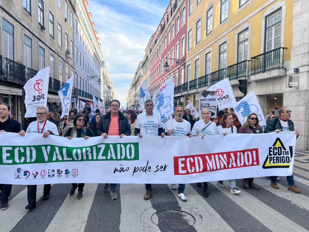 Milhares de trabalhadores, entre os quais professores, educadores e investigadores, estiveram este sábado nas ruas de Lisboa e do Porto, no âmbito da manifestação nacional convocada pela CGTP-IN. Reforçando que o pacote laboral representa «uma alteração profunda nas relações de trabalho», Tiago Oliveira, Secretário-geral da CGTP-IN, enumerou os pilares negativos da proposta, como «a normalização da precariedade, a facilitação do recurso ao outsourcing, a desregulação ainda maior dos horários de trabalho com a introdução do banco de horas individual, o ataque ao direito à greve, o ataque aos sindicatos e à liberdade sindical, a facilitação ainda maior dos despedimentos».
