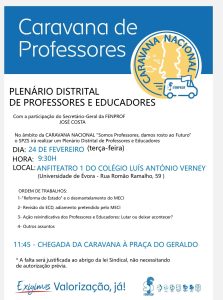 Amanhã, 24 de fevereiro, a Caravana Nacional “Somos professores. Damos rosto ao futuro. Exigimos valorização, já!” vai passar pelos distritos de Vila Real e Évora,……