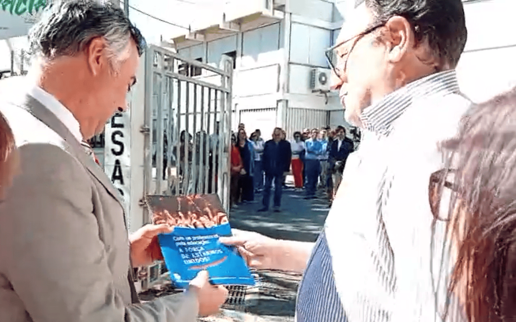 À chegada da comitiva, os dirigentes do SPZS, acompanhados por representantes da Função Pública e do SINAPSA, manifestaram a sua posição face a recentes declarações públicas do ministro, que desvalorizaram o direito de manifestação, consagrado no artigo 45.º da Constituição da República Portuguesa. Foi nesse contexto que o Presidente do SPZS, Manuel Nobre, entregou a carta aberta, alertando para a gravidade das afirmações e para os problemas estruturais na Educação e na Escola Pública, que continuam sem resposta.