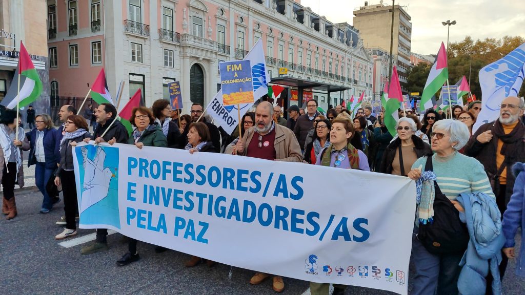 No dia 29 de Novembro, Dia Internacional de Solidariedade com o Povo Palestino, muitos milhares de pessoas desfilaram em Lisboa, entre os Restauradores e o Cais do Sodré, juntando-se assim às muitas mais que nesse mesmo dia manifestaram a sua solidariedade com o povo palestino em mais de 90 cidades europeias.